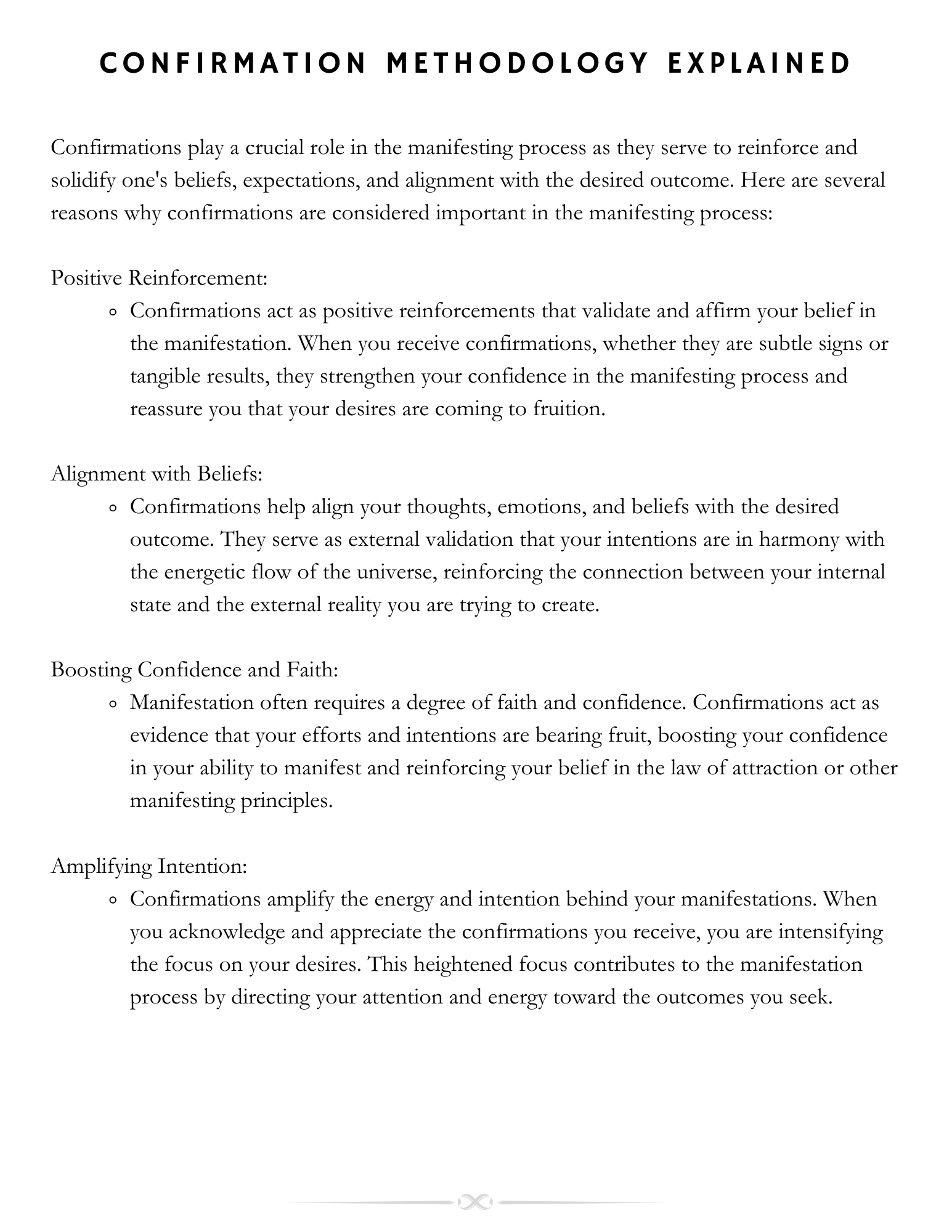 - Confirmation Mastery: Confirmation Mastery: Discover the art of recognizing and celebrating confirmations on your manifestation journey. This book guides you on how to interpret signs, synchronicities, and subtle cues from the universe, turning them into powerful confirmations that fuel your belief in the law of attraction.