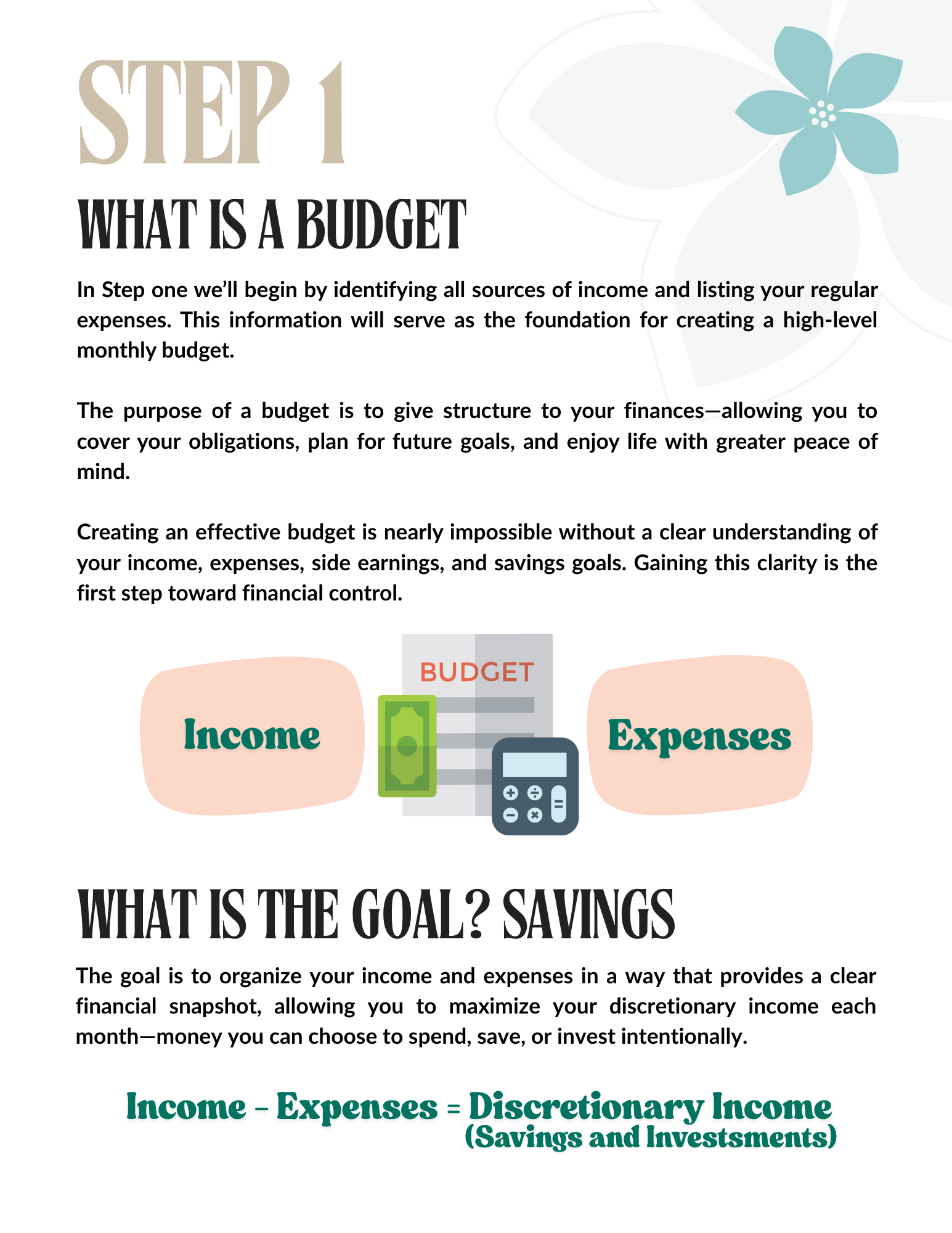 The purpose of this packet is to guide you to a clear snapshot of your finances which will make basic budgeting and saving easier so you can move toward greater savings and investing.