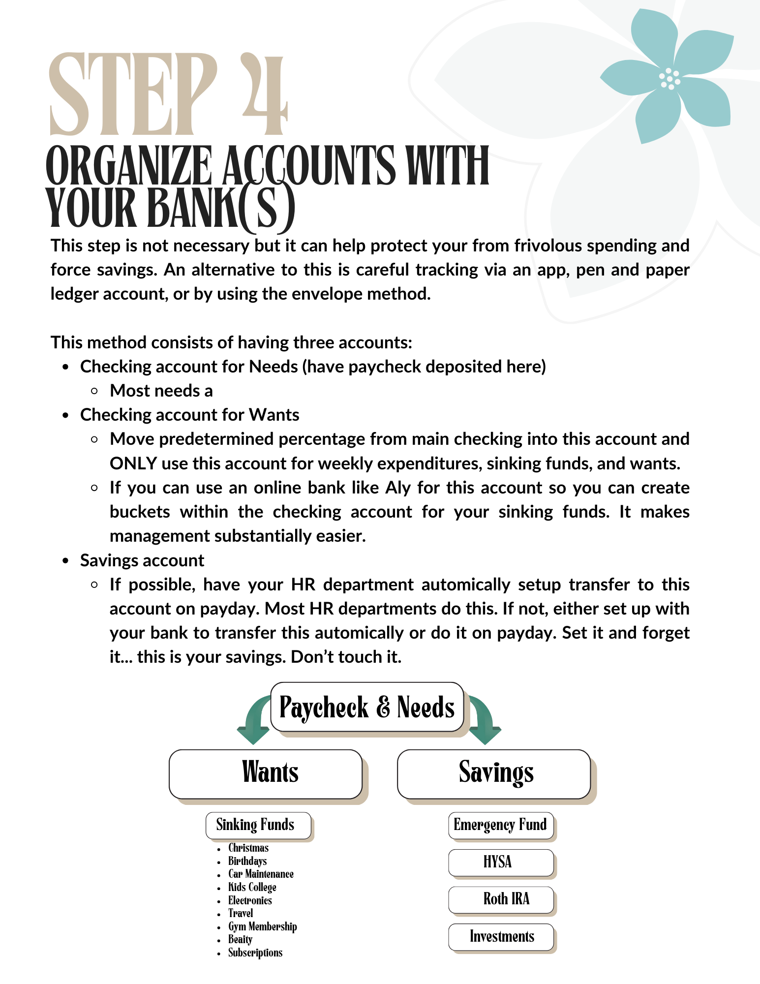 Be sure to save this document so you can pull it up and redo this anytime your money feels messy or you need a 30,000 foot level overview of where things stand.